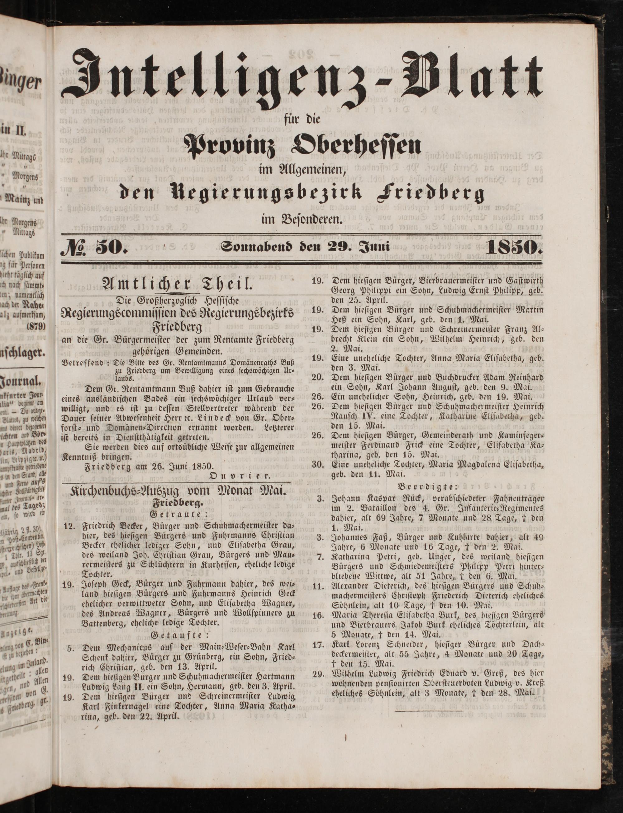 Friedberg am 26. Juni 1850.