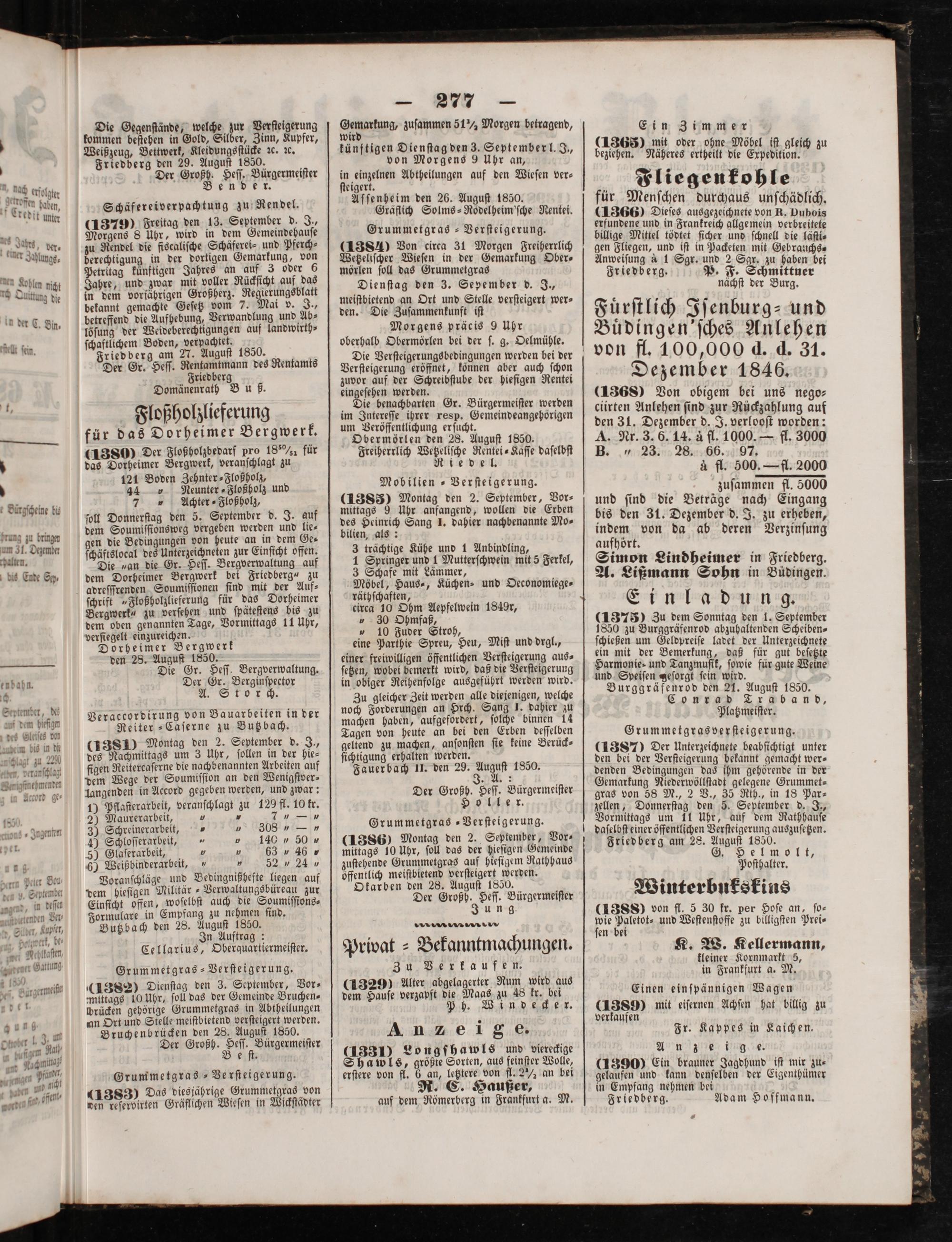 Friedberg den 29. Auguſt 1850,