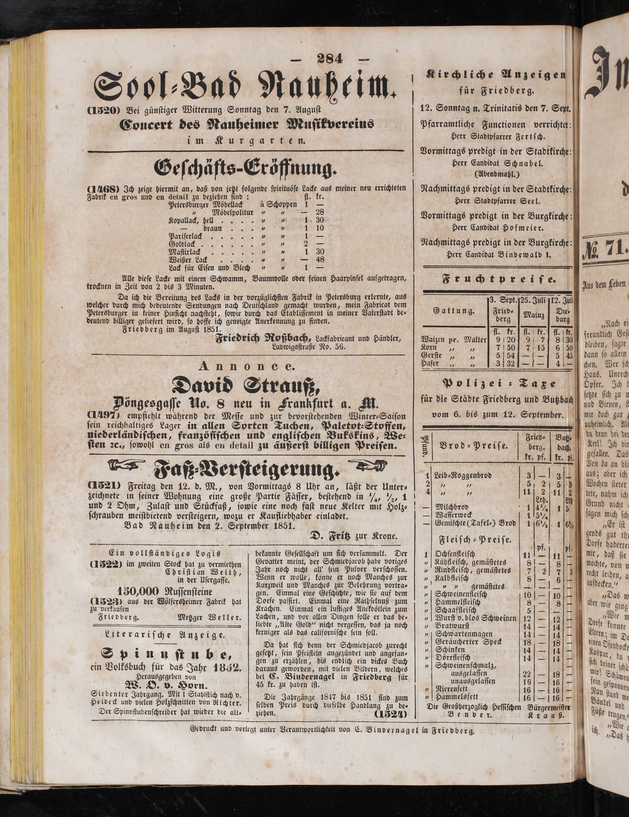 Gedruckt und verlegt unter Verantwortlichkeit von C. Bindernag el in Friedberg.