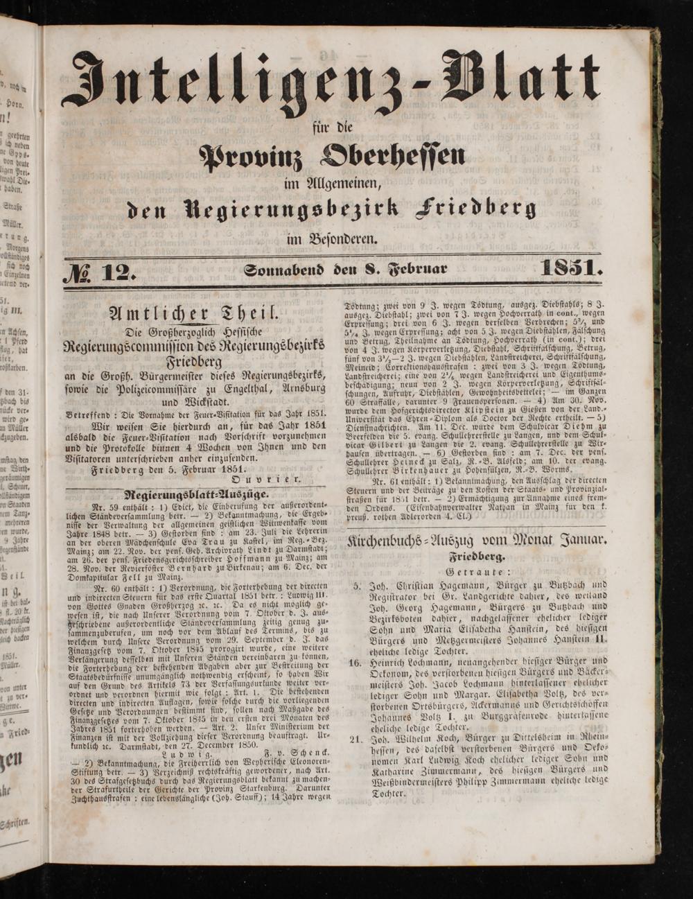 Betreffend: Die Vornahme der Feuer-Viſitation für das Jahr 1851. Wir weiſen Sie hierdurch an, für das Jahr 1851 alsbald die Feuer⸗Viſitation nach Vorſchrift vorzunehmen und die Protokolle binnen 4 Wochen von Ihnen und den Viſitatoren unterſchrieben anher einzuſenden. Friedberg den 5. Februar 1851.