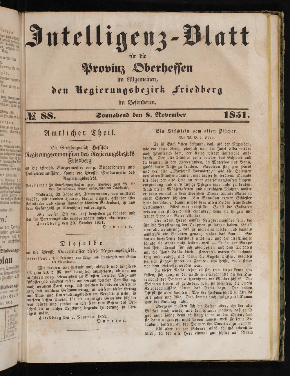Wir weiſen Sie an, auf denſelben zu fahnden und ihn im Betretungsfalle wohlverwahrt anher abzuliefern. Friedberg den 30. October 1851.