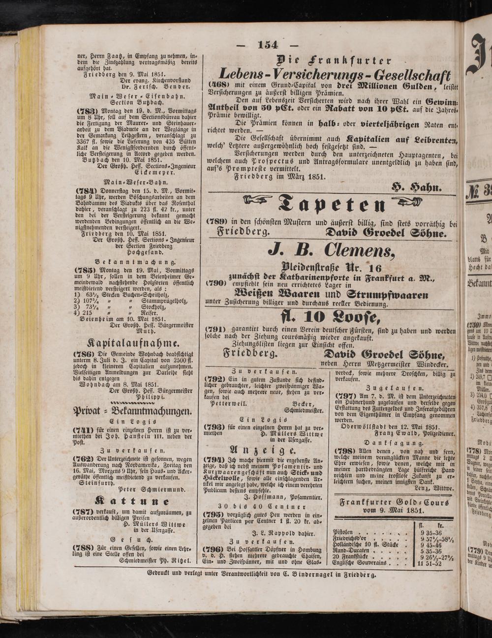 Gedruckt und verlegt unter Verantwortlichkeit von C. Bindernagel in Friedberg.
