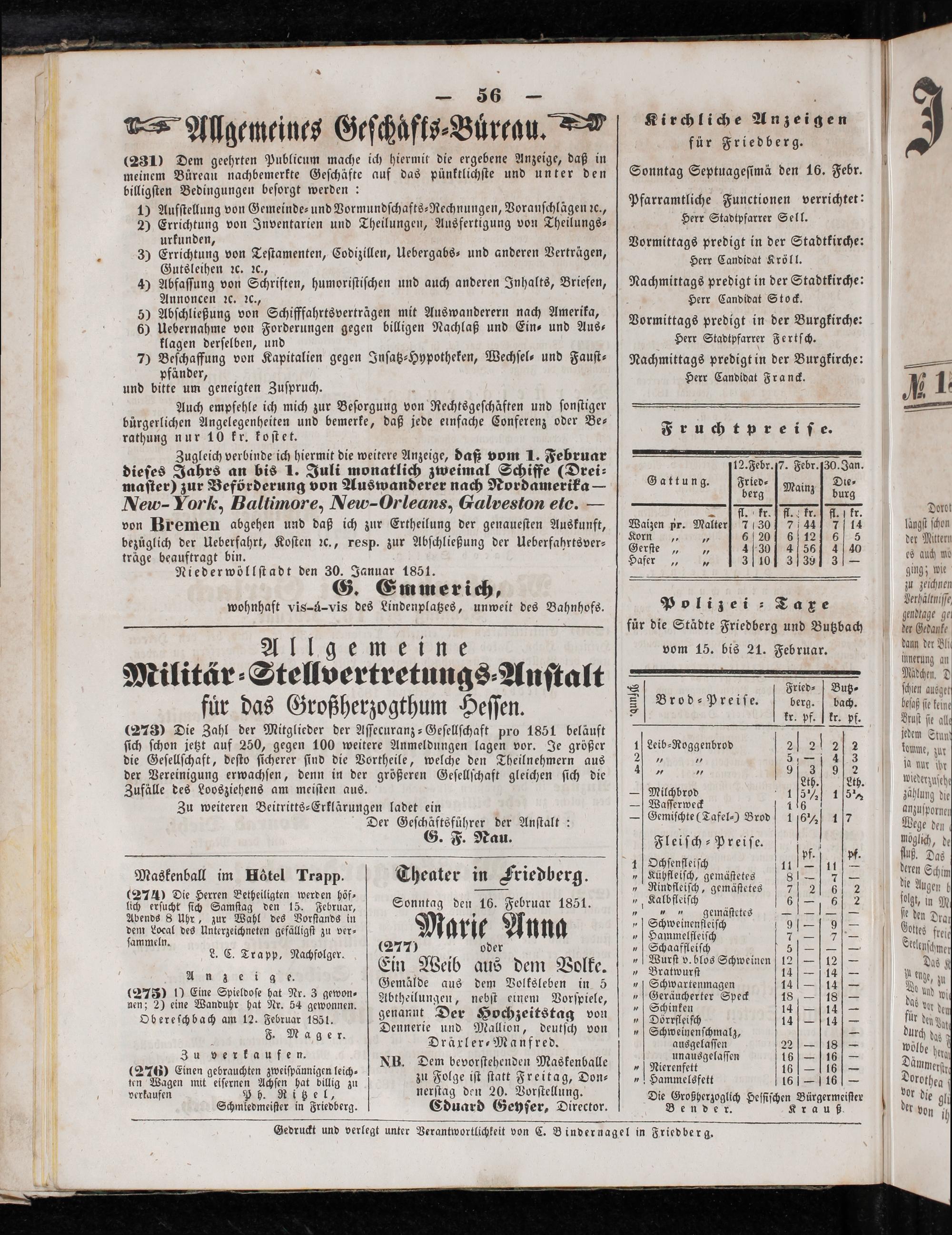 Gedruckt und verlegt unter Verantwortlichkeit von C. Bindernagel in Friedberg.