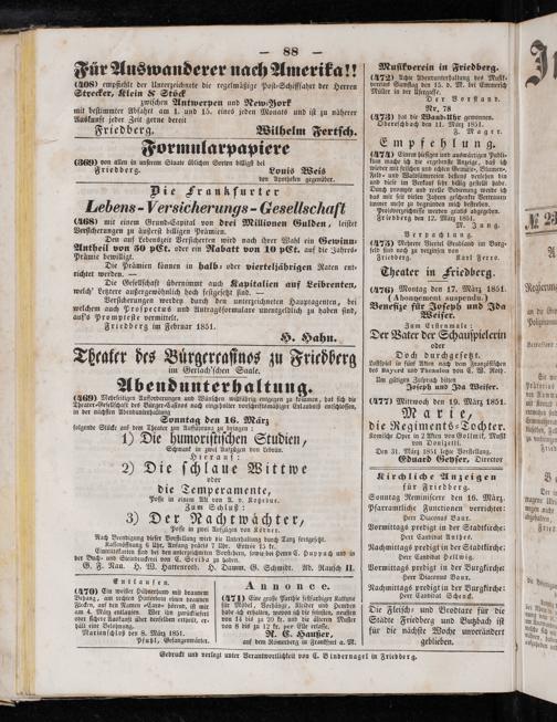 Gedruckt und verlegt unter Verantwortlichkeit von C. Bindernagel in Friedberg.