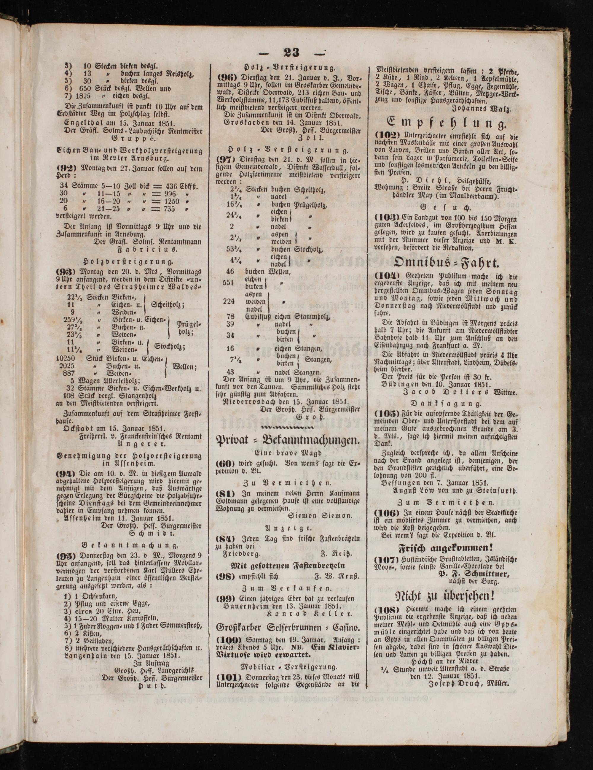 ee auf dem Straßhbeimer Forſt⸗ hauſe. Ockſtadt am 15. Januar 1851. Freiherrl. v. Franckenſtein'ſches Rentamt Angerer.