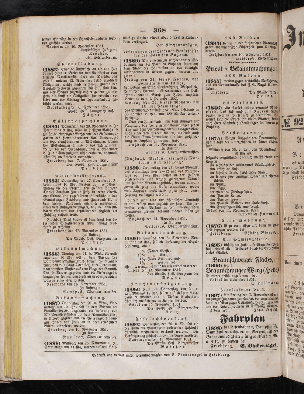 Gedruckt und verlegt unter Verantwortlichkeit von C. Bindernagel in Friedberg.