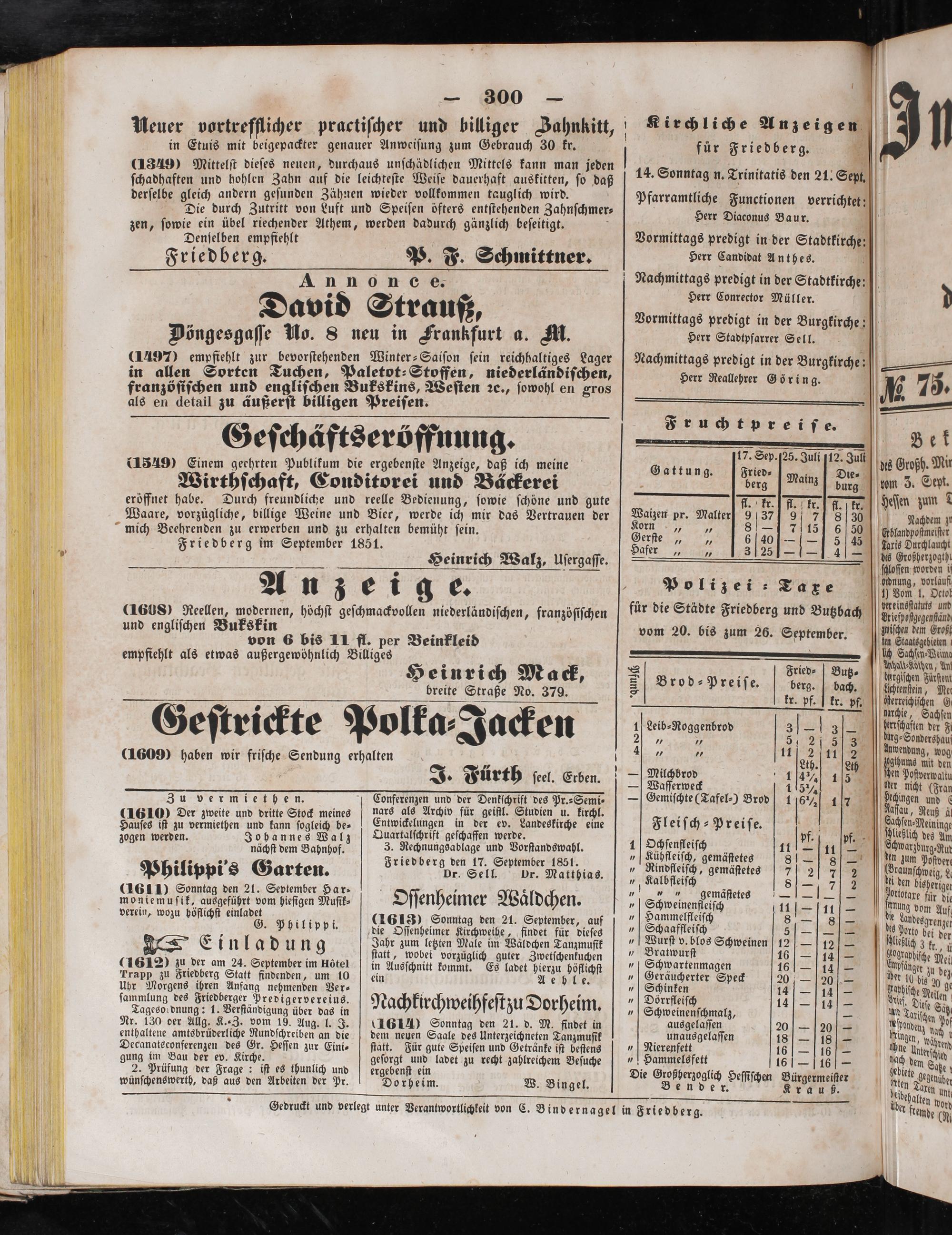 Gedruckt und verlegt unter Verantwortlichkeit von C. Binderna gel in Friedberg.