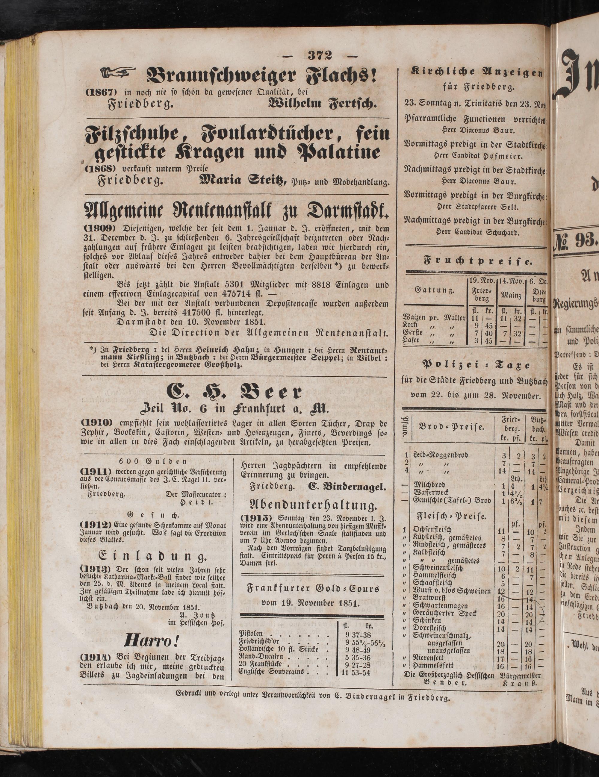 Gedruckt und verlegt unter Verantwortlichkeit von C. Binde rnagel in Friedberg.