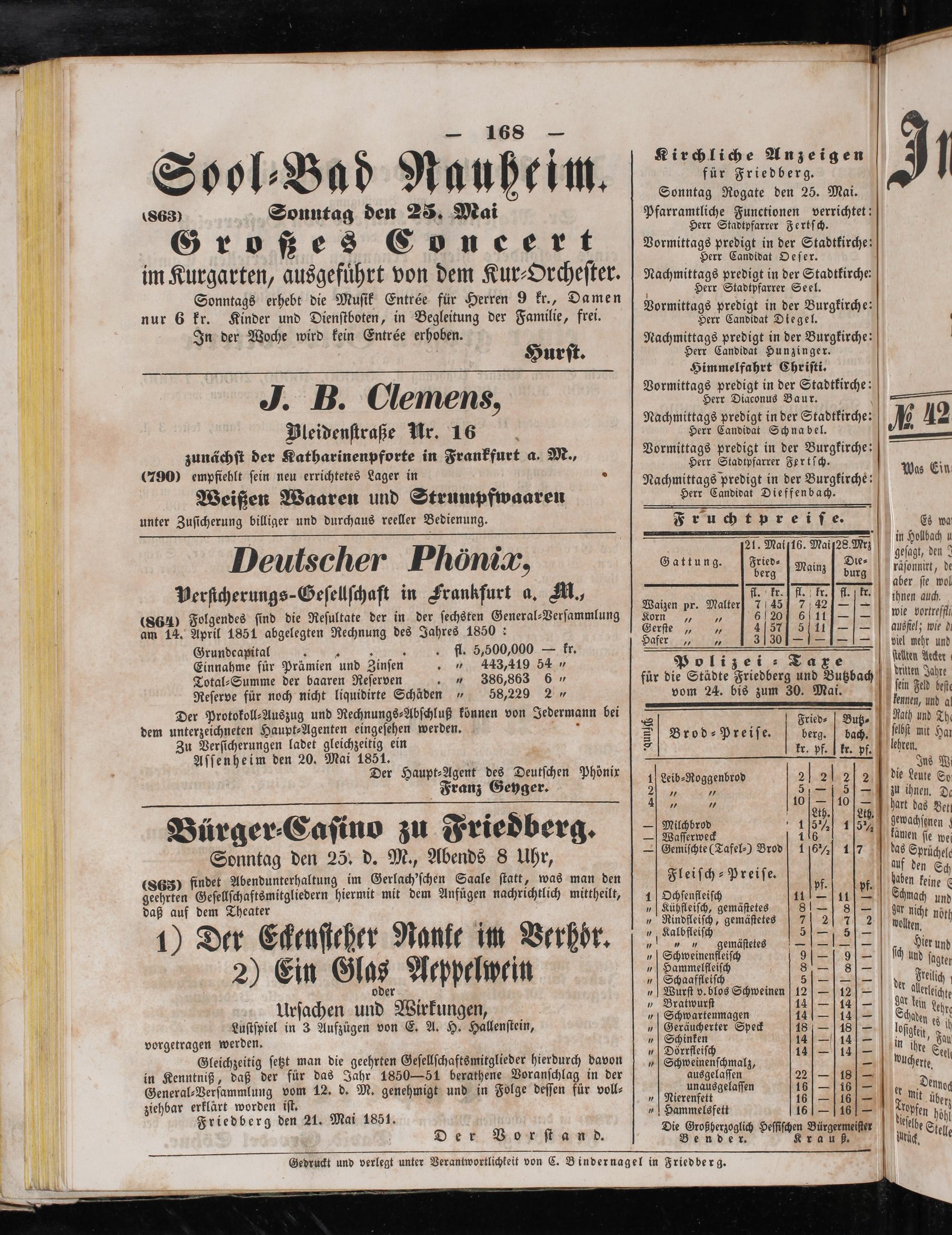 Gedruckt und verlegt unter Verantwortlichkeit von C. Binder nagel in Friedberg.
