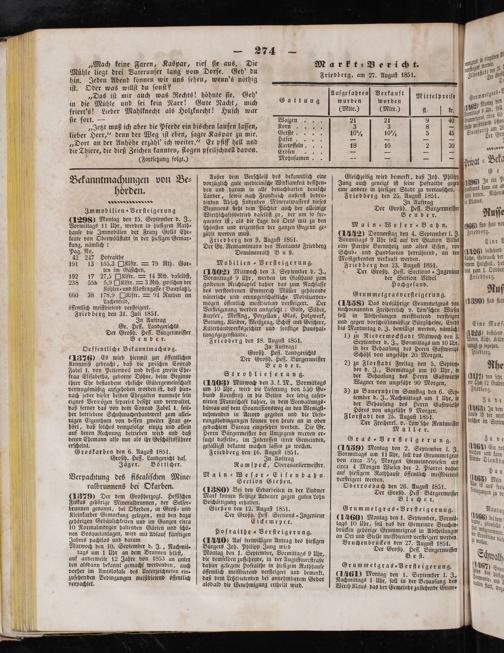 iſt. Oder was willſt du ſonſt? g 175— b „Das iſt mir auch was Rechts! höhnte ſie. Geh' Aufgefahren Verkauft[ Mittelpreiſe unnetgte in die Mühle und ſei kein Narr! Gute Nacht, mich Gattung wurden[wurden 1 10 friert's! Lieber Mahlknecht als Holzknecht! Huſch war(Mltr.)(Mltr.) fl. ſie fort.— 5 3 n 21 21 9 4% eam end offen „Jetzt muß ich aber die Pferde ein bischen laufen laſſen, Korf, 3 3 8— e 1 5 m 2 lieber Herr,“ denn der Weg iſt eben, ſagte Kaspar zu mir. 1 e 10% 10%½ 5 45 Stein Fer Gre Dort an der Anhöhe erzähl' ich weiter.“ Er pfiff hell und e ee 7 7 2 5 f „ 8 5 a. Kartoffelnn 18 10 2 30 1 die Thiere, die dieß Zeichen kannten, flogen pfeilſchnell davon. on 1 2—— N(Fortſetzung folgt.) Mohnſamen—— 5 2 5 Beko Ge 8 Außer dem Verſchleiß des bekanntlich eine Gleichzeitig wird bemerkt, daß Joh. Philipp 0 Bekanntmachungen von Be⸗ vorzüglich gute mediciniſche Wirkſamkeit beſitzen⸗] Jung auch geneigt ift ſeine Hofraithe gegen 1396) In 5 5 hoͤrden den und darum in alle benachbarten deutſche eine andere in hieſiger Stadt zu vertauſchen. alflurts 197 1 3 Länder, ſowie nach Frankreich äußerſt bedeu⸗ Friedberg den 25. Auguſt 1851. ahne treten. a0 RN tenden Abſatz pen ee e 8 0 In Auftrag. ga Blattes. ilien⸗ i Brunnens ſteht dem Pächter auch der alleinige er Großh. Heſſ. Bürgermeiſter 2 e Wirthſchaftsbetrieb daſelbſt zu, der um ſo fre⸗ Bender. Nuſſe