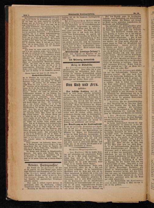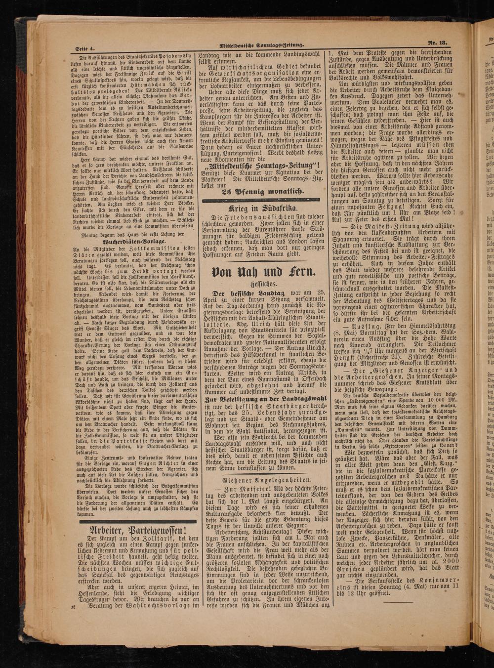 „Mitteldeutsche Honntags-Zeitung“! Benützt diese Nummer zur Agitation bei der Maifeier! Die Mitteldeutsche Sonntags-Ztg. kostet nur
