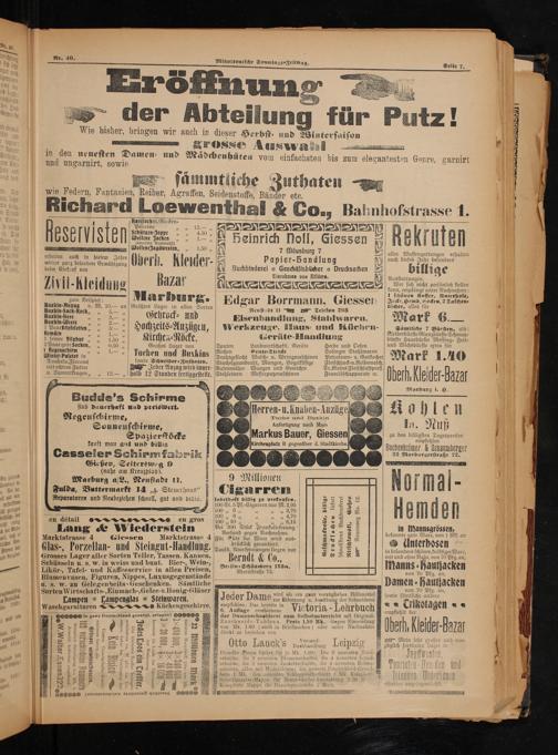 Marburg a/ L., Neustadt 11, Fulda, Buttermarkt 14„z. Steuerhaus“ Reparaturen und Neubeziehen schnell, gut und billig.;