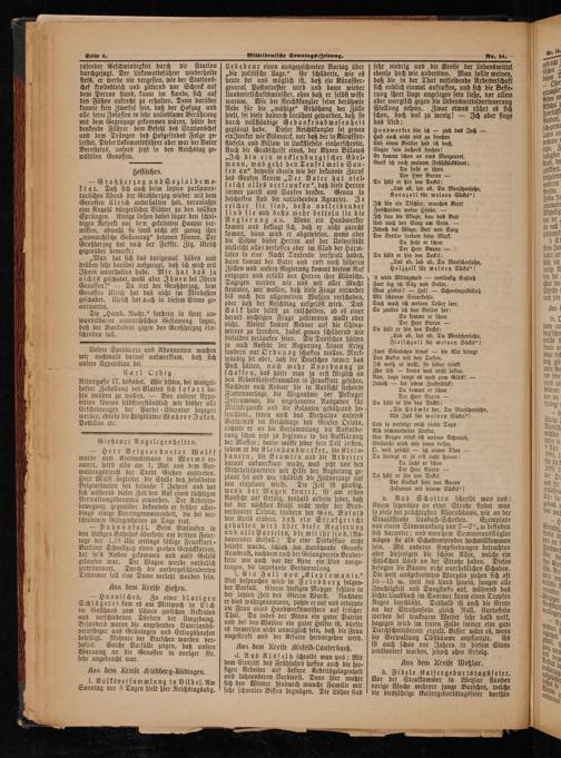 h. Fidele Kaisergeburtstagsfeier. Vor der Strafkammer in Wetzlar standen vorige Woche mehrere junge Burschen, welche die diesjährige Kaisergeburtstagsfeier dorthin