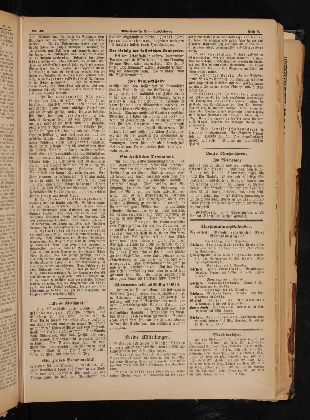 Aus Lüdenscheid wird berichtet:„Ein Pferdemetzger Namens Keßler, aus Gießen hat hier einen Laden eröffnet. Drei Pferde waren am ersten Tage verkauft; am Tage darauf wurde ein wegen Beinbruchs geschlachtetes schweres Pferd aus dem Schlacht- hause ins Verkaufslokal gebracht. Eine Stunde nach Ablieferung war das Fleisch des etwa 1200 Pfund Schlachtgewicht zeigenden Tieres verkauft. Der Pferdemetzger kann die vom Publikum beanspruchten Fleischmengen nicht liefern. Das Pfund Fleisch ohne Knochen kostet 35 Pfg., mit Knochen 30 Pfg.
