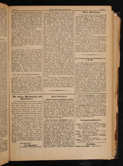 Briefkasten. Alsfeld und Wetzlar. Nächste Nummer.