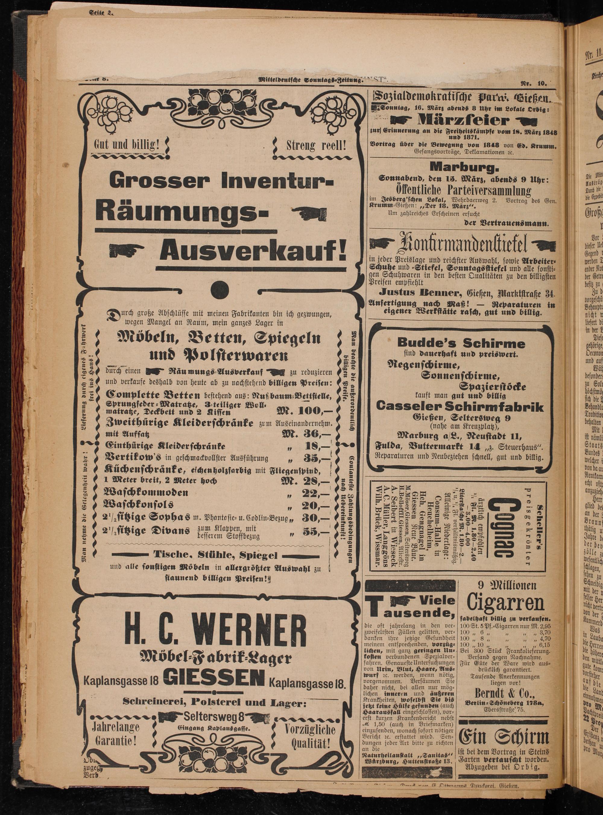 Justus Benner, Gießen, Marketstraße 34. Anfertigung nach Maß!— Reparaturen in