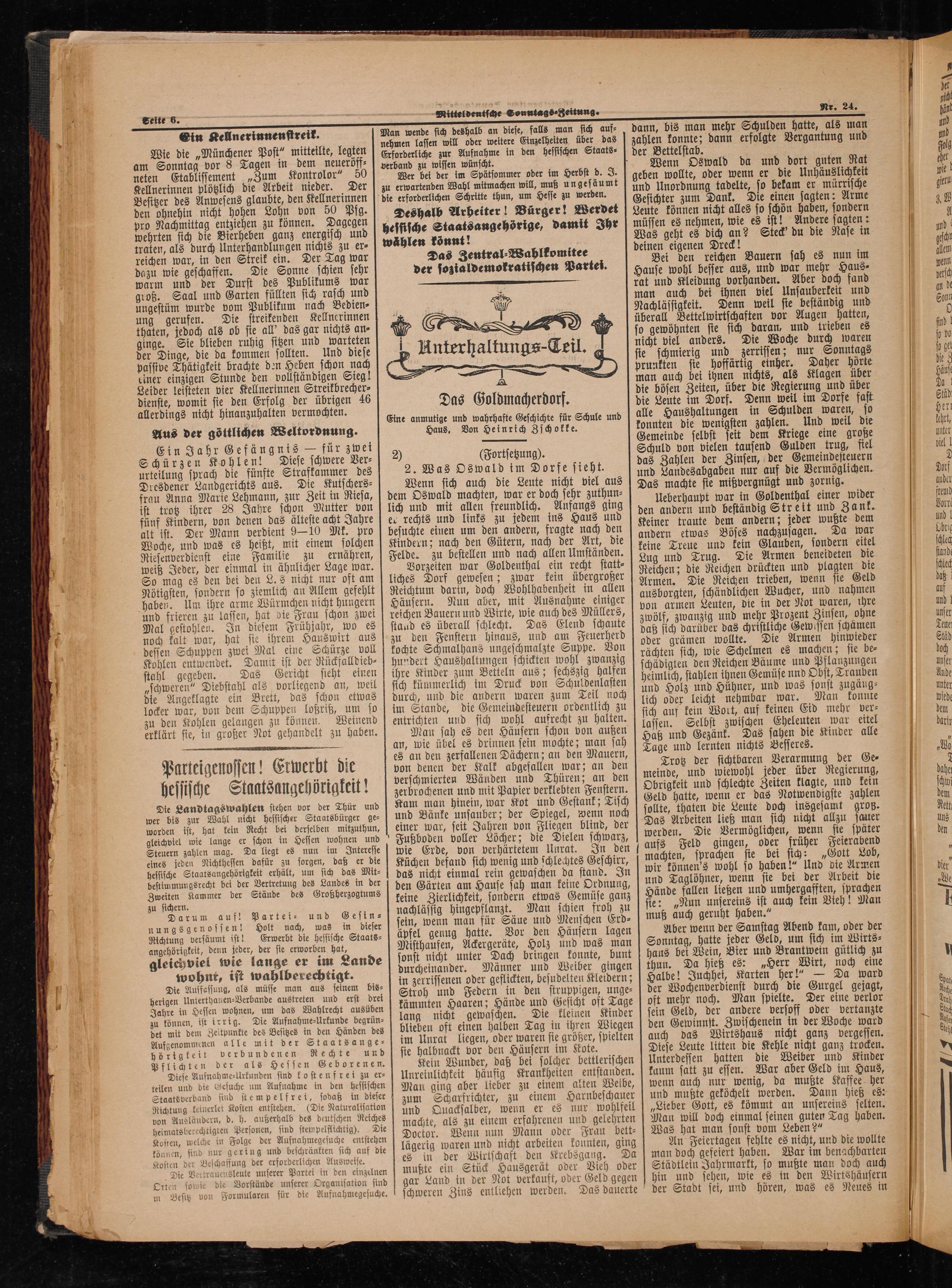 Man wende sich deshalb an diese, falls man sich auf⸗ nehmen lassen will oder weitere Einzelheiten über das Erforderliche zur Aufnahme in den hessischen Staats⸗ verband zu wissen wünscht. Wer bei der im Spätsommer oder im Herbst d. J. zu erwartenden Wahl mitmachen will, muß ungesäumt die erforderlichen Schritte thun, um Hesse zu werden. Deshalb Arbeiter! Bürger! Werdet hessische Staatsangehörige, damit Ihr wählen könnt!