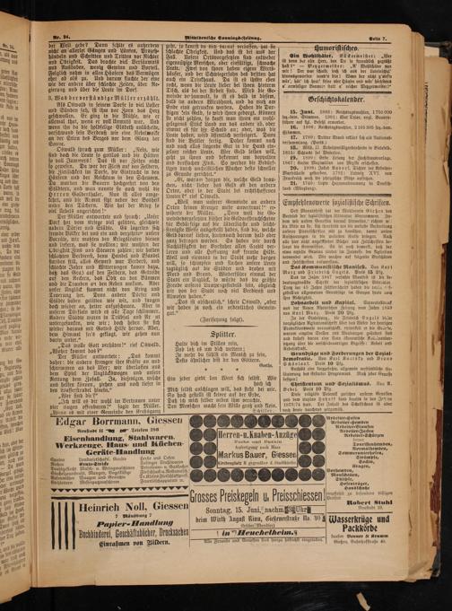 15. Juni. 1893: Reichstagswahlen, 1750 000 soz.⸗dem. Stimmen. 1381: Wat Tylor, engl. Bauern⸗ führer auf kgl. Befehl ermordet.