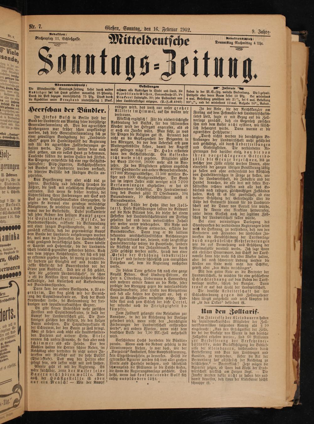 Gießen, Sonntag, den 16. Februar 1902.