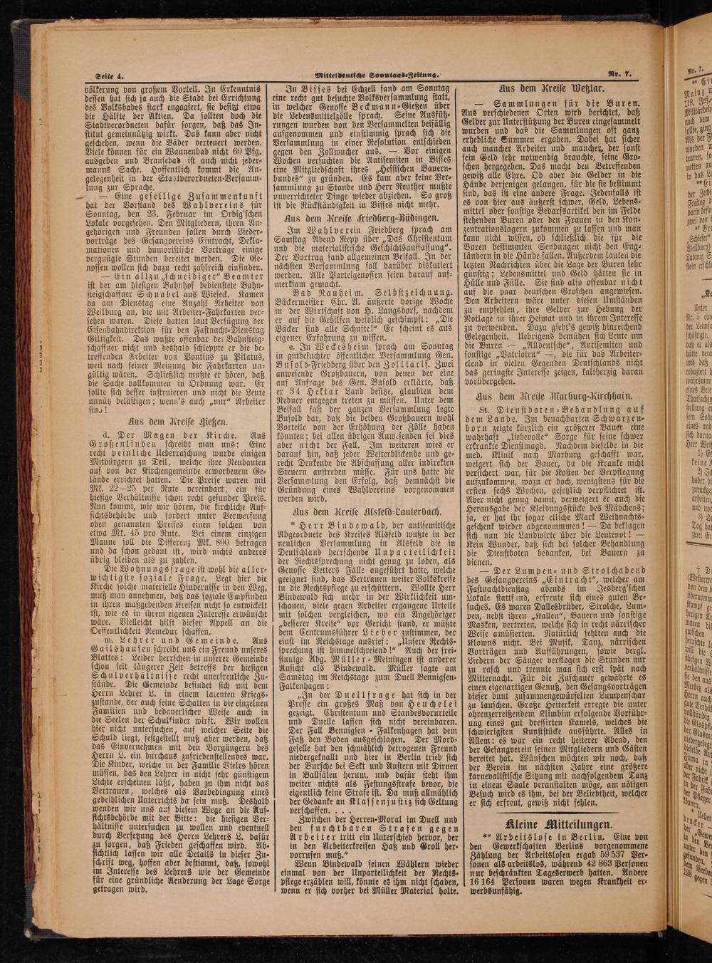 Im Wahlverein Friedberg sprach am Samstag Abend Repp über„Das Christentum und die materialistische Geschichtsauffassung“. Der Vortrag fand allgemeinen Beifall. In der nächsten Versammlung soll darüber diskutiert werden. Alle Parteigenossen seien darauf auf⸗
