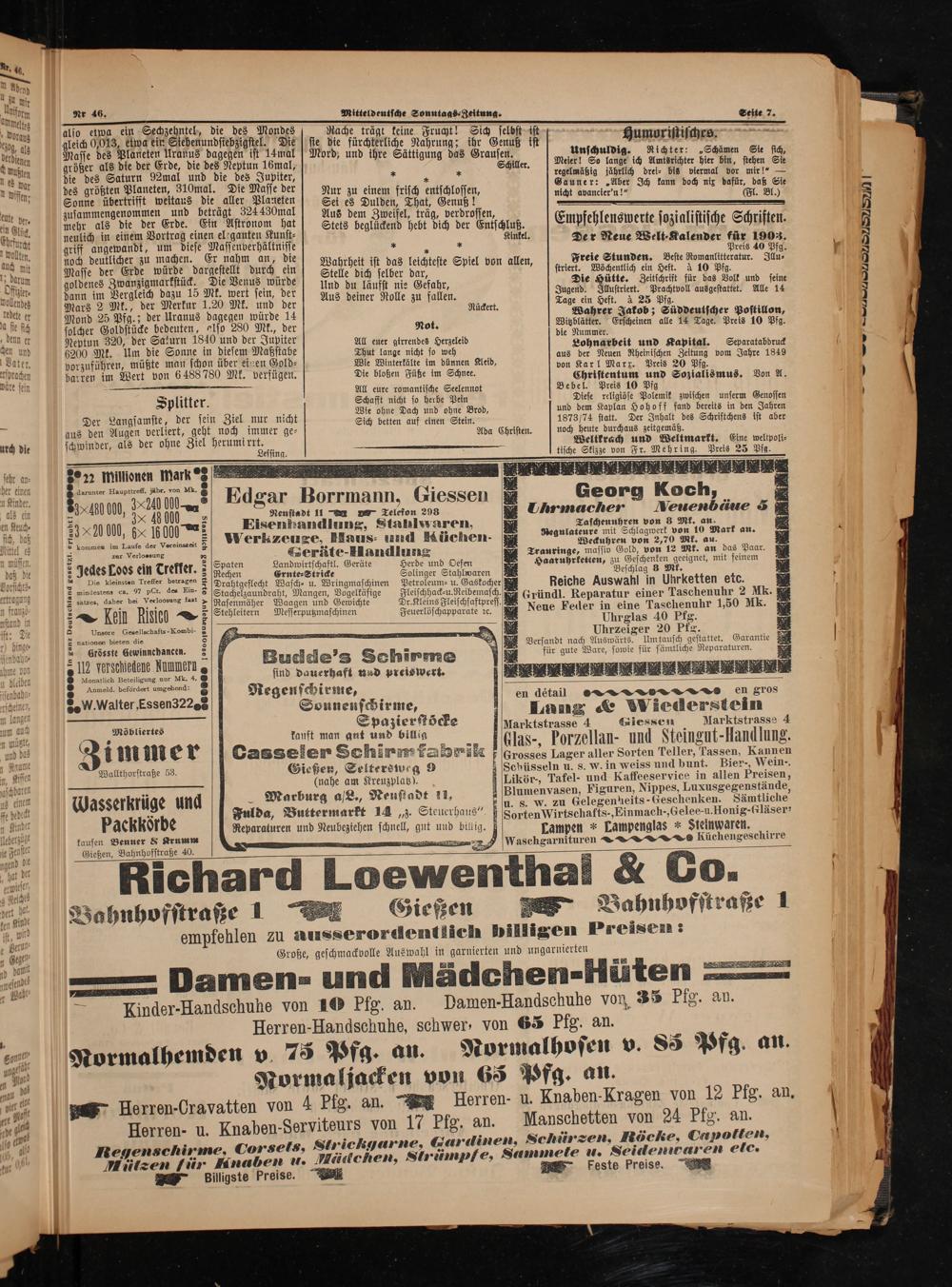 Herren-Cravatten von 4 Pfg. an. Herren- u. EKnaben-Kragen von 12 Pfg. an. Herren- u. Knaben-Serviteurs von 17 Pfg. an.