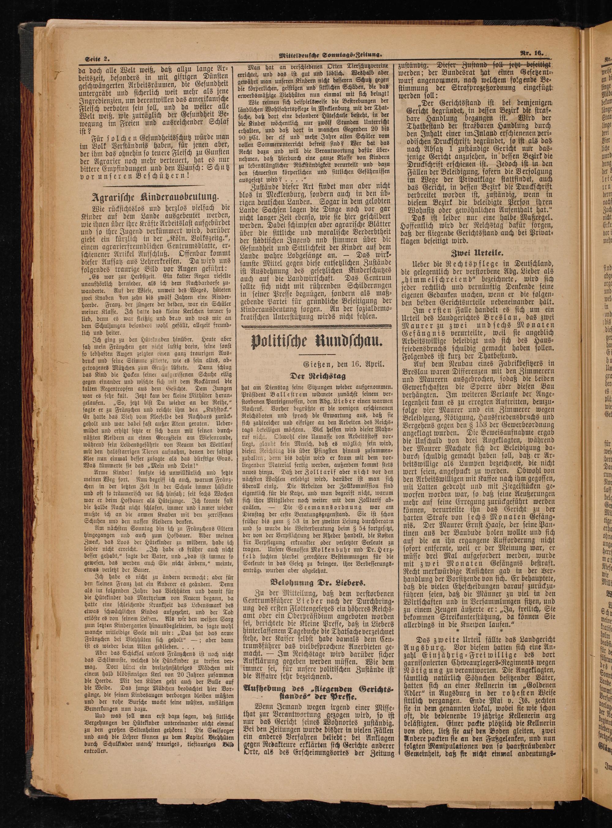Gießen, den 16. April. Der Reichstag