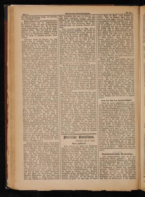 politische Nundschau. Gießen, den 19. Juni. Vom Zolltarif.