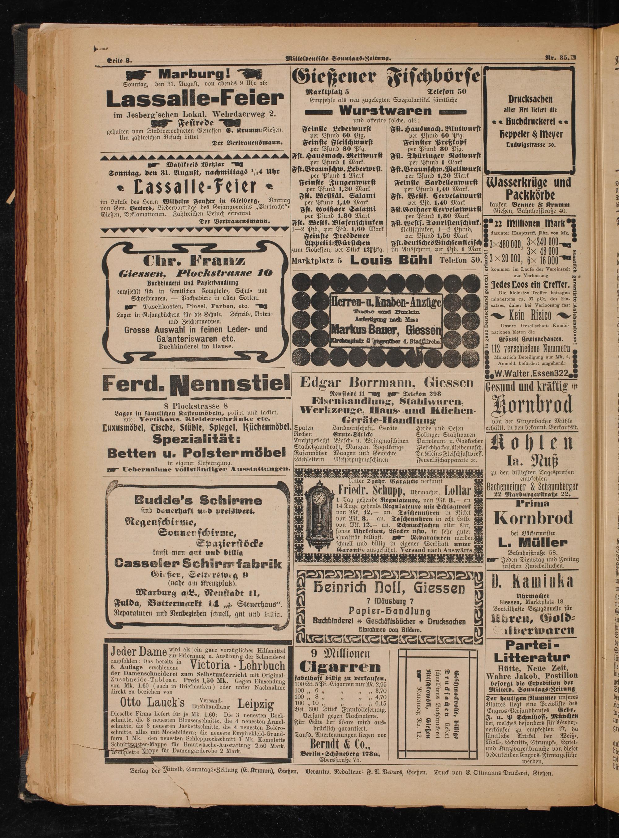 Verlag der Mitteld. Sonntags⸗Zeitung(E. Krumm), Gießen. Verantw. Redakteur: F. A. Vetters, Gießen. Druck