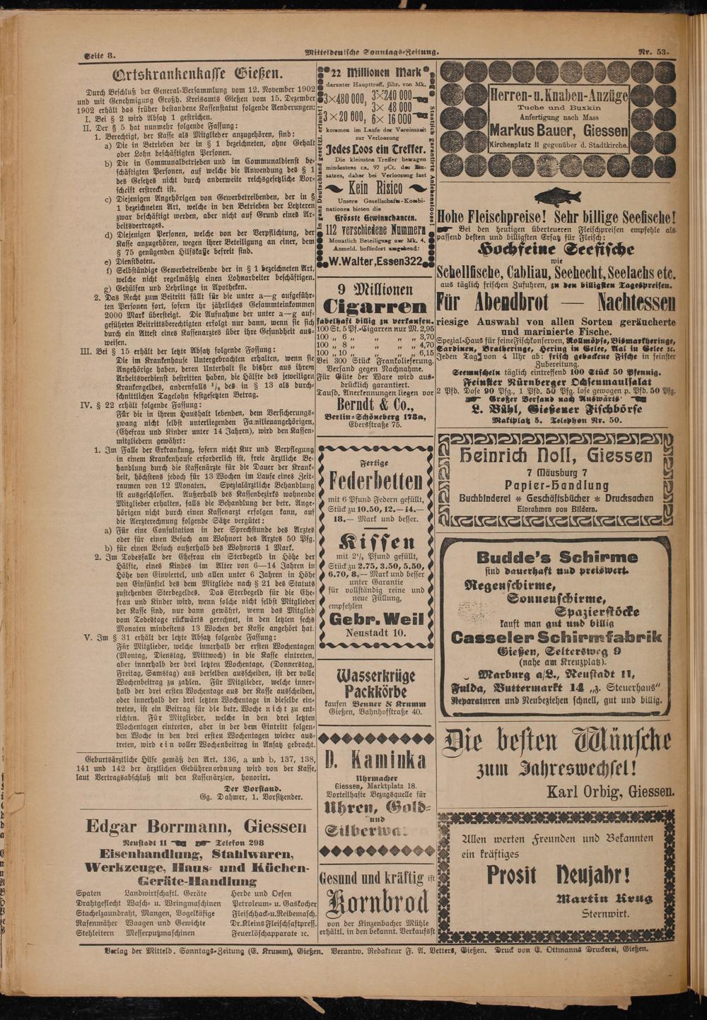 Verlag der Mitteld. Sonntags⸗Zeitung(E. Krumm), Gießen. Verantw. Redakteur F. A. Vetters, Gießen. Druck von E. Ottmanns Druckerei, Gießen.