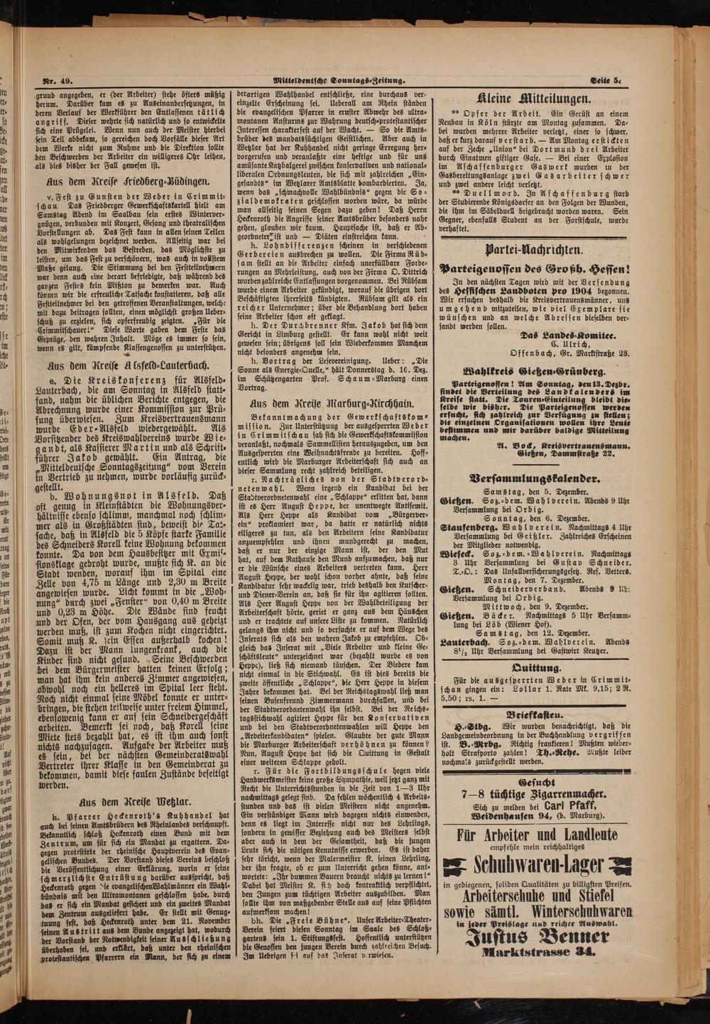 Bekanntmachung der Gewerkschaftskom⸗ mission. Zur Unterstützuug der ausgesperrten Weber in Crimmitschau sah sich die Gewerkschaftskommission veranlaßt, nochmals Sammellisten herauszugeben, um den Ausgesperrten eine Weihnachtsfrende zu bereiten. Hoff⸗ entlich wird die Marburger Arbeiterschaft sich auch an dieser Sammlung recht zahlreich beteiligen.