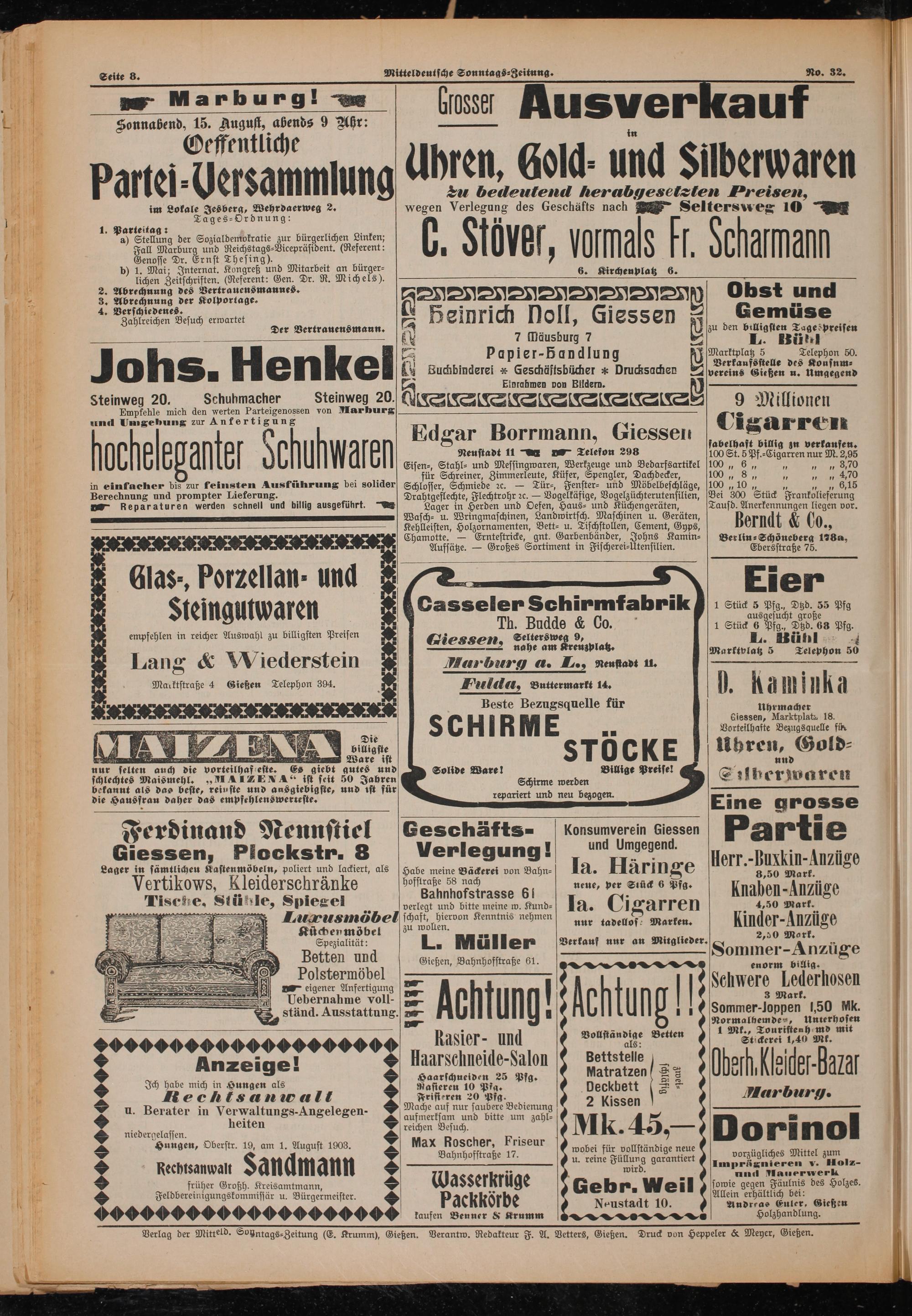 niedergelassen. Hungen, Oberstr. 19, am 1. August 1903.