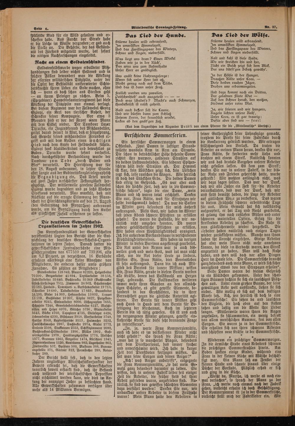 (Aus dem Ungarischen des Alexander Petöfi von einem Pfarrer für die„Mitteldeutsche“ übersetzt.)