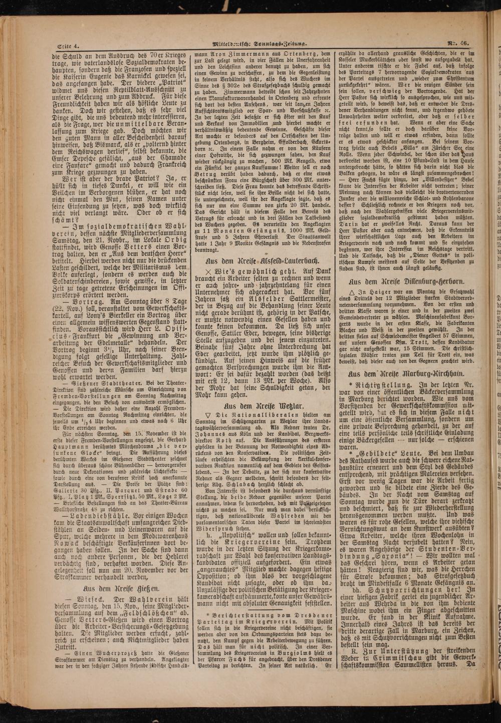 — Im sozialdemokratischen Wahl⸗ verein, dessen nächste Mitgliederversammlung Samstag, den 21. Novbr., im Lokale Or big