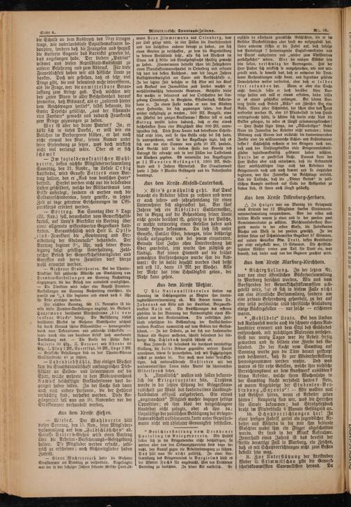 Von Interesse ist besonders die durchaus vernünftige Stellung, die beide Redner gegenüber unserer Partei annahmen, indem sie hervorhoben, daß mit Pallizeigesetzen nichts zu machen sei. Nur muß man dabei berücksich⸗ tigen, daß nationalliberale Wahlreden mit den parlamentarischen Taten dieser Partei im schreiendsten Widerspruch stehen.