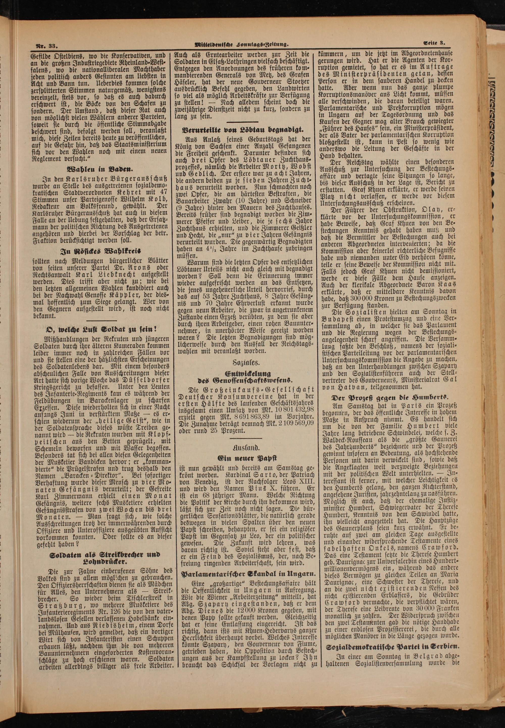 ist nun gewählt und bereits am Samstag ge⸗ krönt worden. Kardinal Sarto, der Patriach von Venedig, ist der Nachfolger Leos XIII. und wird den Namen Pius KX. führen. Er ist ein 68 jähriger Mann. Welche Richtung die Politik der Kirche durch ihn bekommen wird, läßt sich zur Zeit noch nicht sagen. Die bür⸗ gerlichen Sensationsblätter, die natürlich gerade deswegen in vielen Spalten über den neuen Papst schreiben, behaupten, er sei ein religiöser Papst im Gegensatz zu Leo, der ein politischer gewesen. Die Zukunft wird lehren, was daran richtig ist. Soviel steht aber fest, daß er ein Feind des Sozialismus, der, nach Be⸗ freiung ringenden Arbeiterschaft, sein wird.