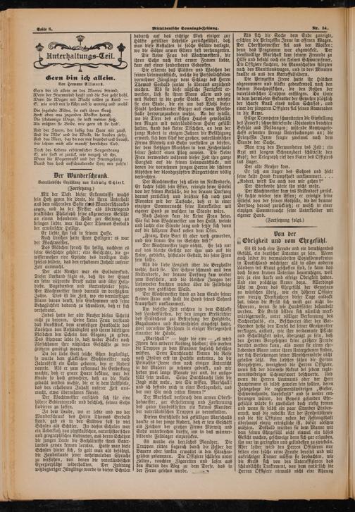 Der alte Reußer war ein Soldatenkind. Dieser Umstand fügte es, daß ihn der Staat an seine nährende Brust nahm und über Holz⸗ diebe, Vagabunden und Kartenspieler setzte. Der Wachtmeister stand damals im dreißigsten Jahre. Dies ist die Zeit, wo ein vernünftiger Mann daran denkt, sein Einkommen und seine Behaglichkeit dadurch zu schmälern, daß er sich verheiratet.