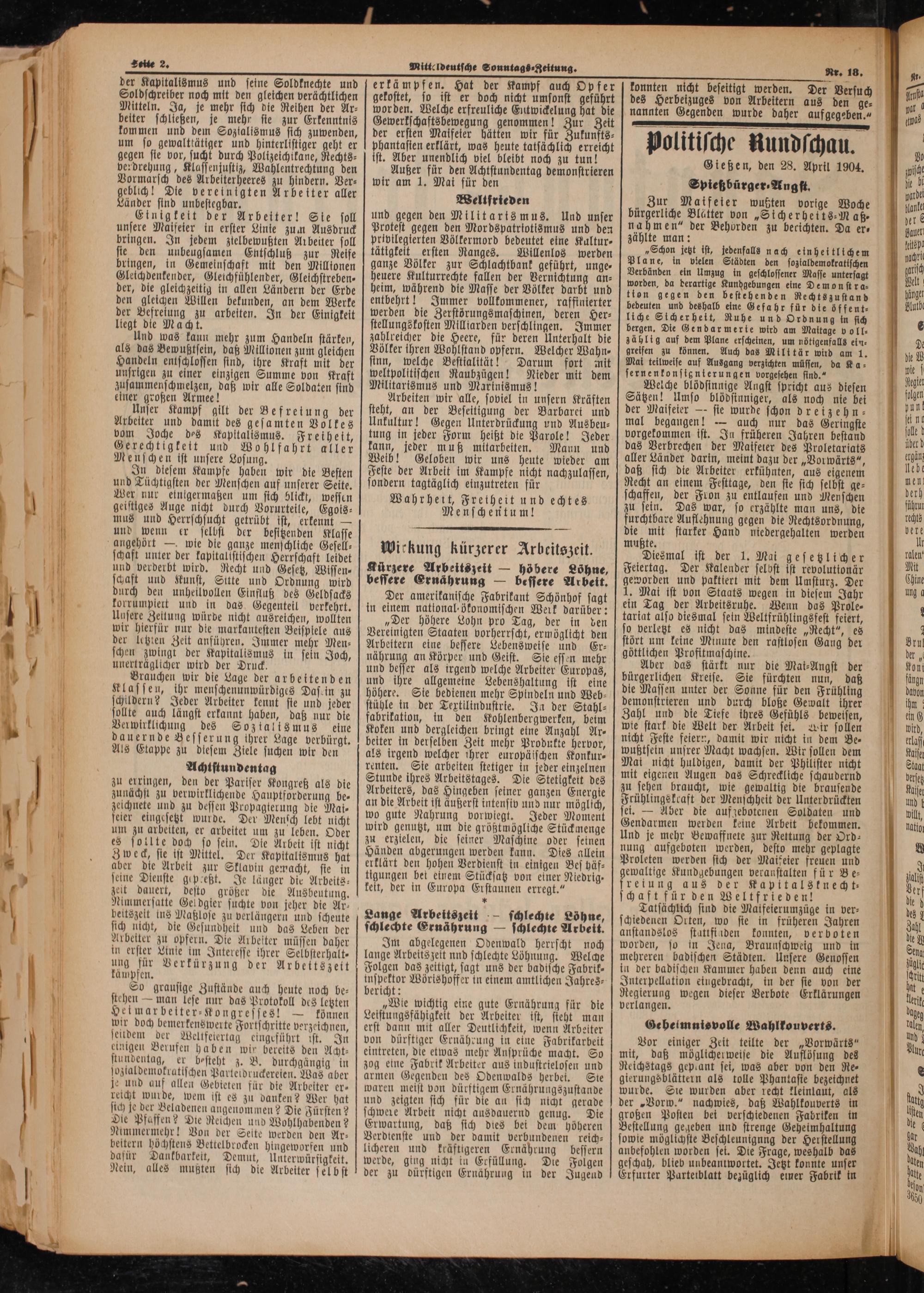 nannten Gegenden wurde daher auf gegeben.“ Politische Rundschau. Gießen, den 28. April 1904.