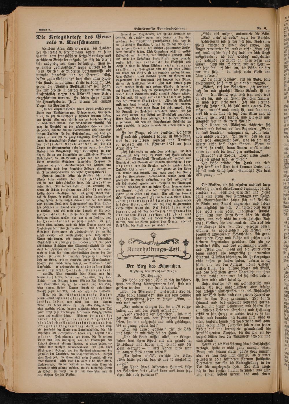 „An den einzelnen Stellen seiner Briefe erzählt mein Vater von Ausschreitungen, Plünderungen, Grausam⸗ keiten, die sich die Deutschen zu schulden kommen ließen, und spricht offen und ehrlich von der durch den Krieg tief verderbten Moral. Sie verschwinden räumlich fast ganz im Vergleich zu den zahlreichen Beweisen eines glühenden, beinahe blinden Patriotismus und einer ein⸗ seitigen Vorliebe für den Soldatenstand, und doch ge⸗ nügten sie, um fast die ganze bürgerliche Presse Deutsch⸗ lands in chauvinistische Raserei gelangen zu lassen. Von den hessischen Käseblättchen an, die als Organ der Kriegervereine nahe daran waren, den toten Verfasser der Kriegsbriefe wegen Beleidigung zu ver⸗ Hagen, bis zu den Leitartikeln der„Münchener Neuesten Nachrichten“, die als Beweis gegen das von meinem Vater verurteilte Gebahren bayerischer Truppen die tönenden offiziellen Anerkennungen von Fürsten und Heerführern nach dem siegreichen Feldzug zitieren— ein Trompetengeschmetter beleidigter Hurrapatrioten!