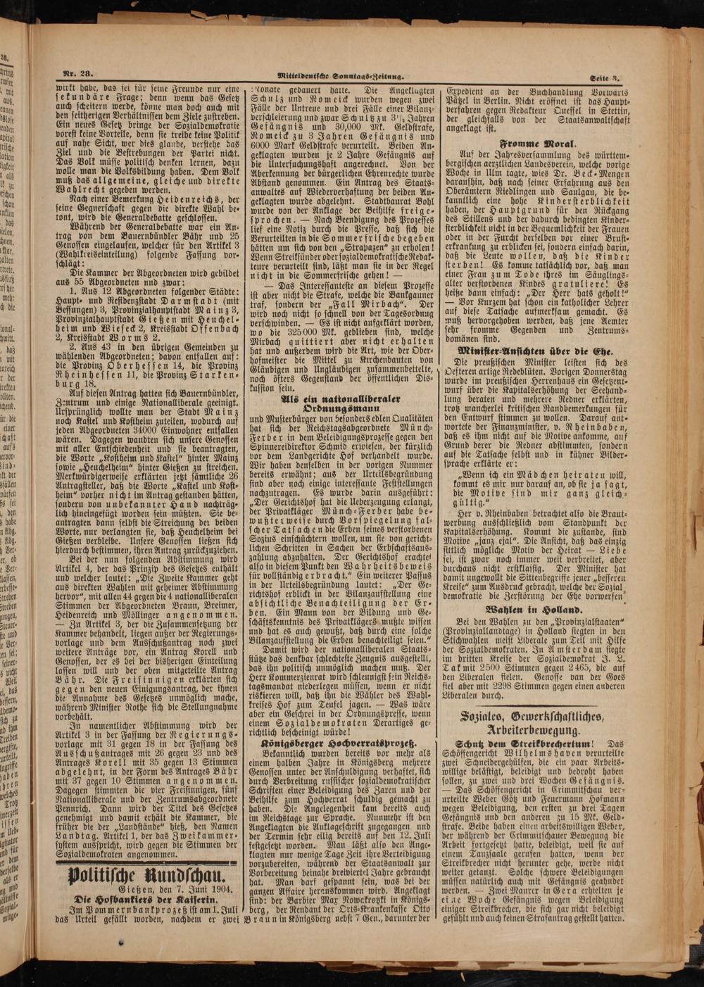Gießen, den 7. Juni 1904. Die Hofbankiers der Kaiserin. Im Pommernbankprozeß ist am 1. Juli