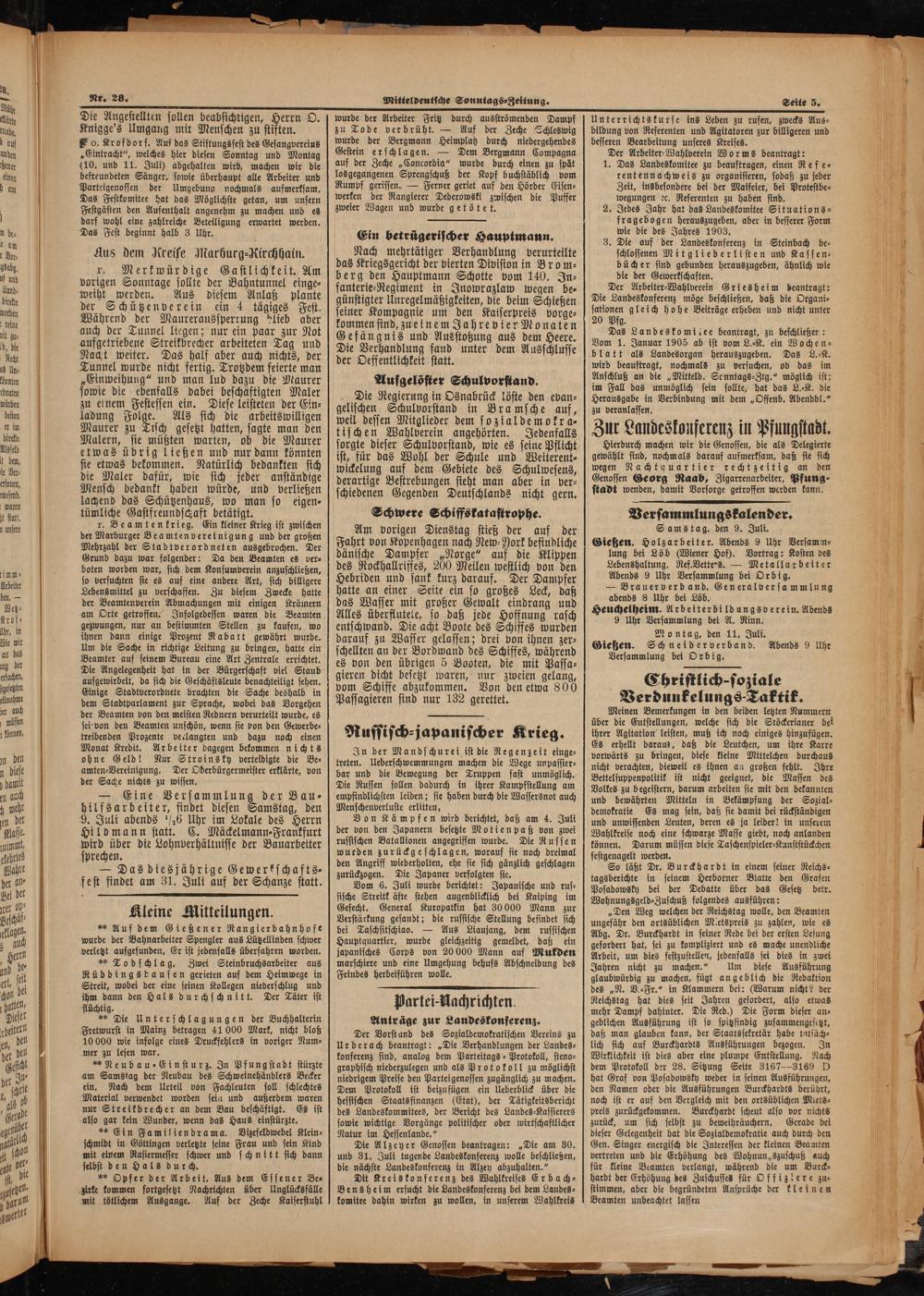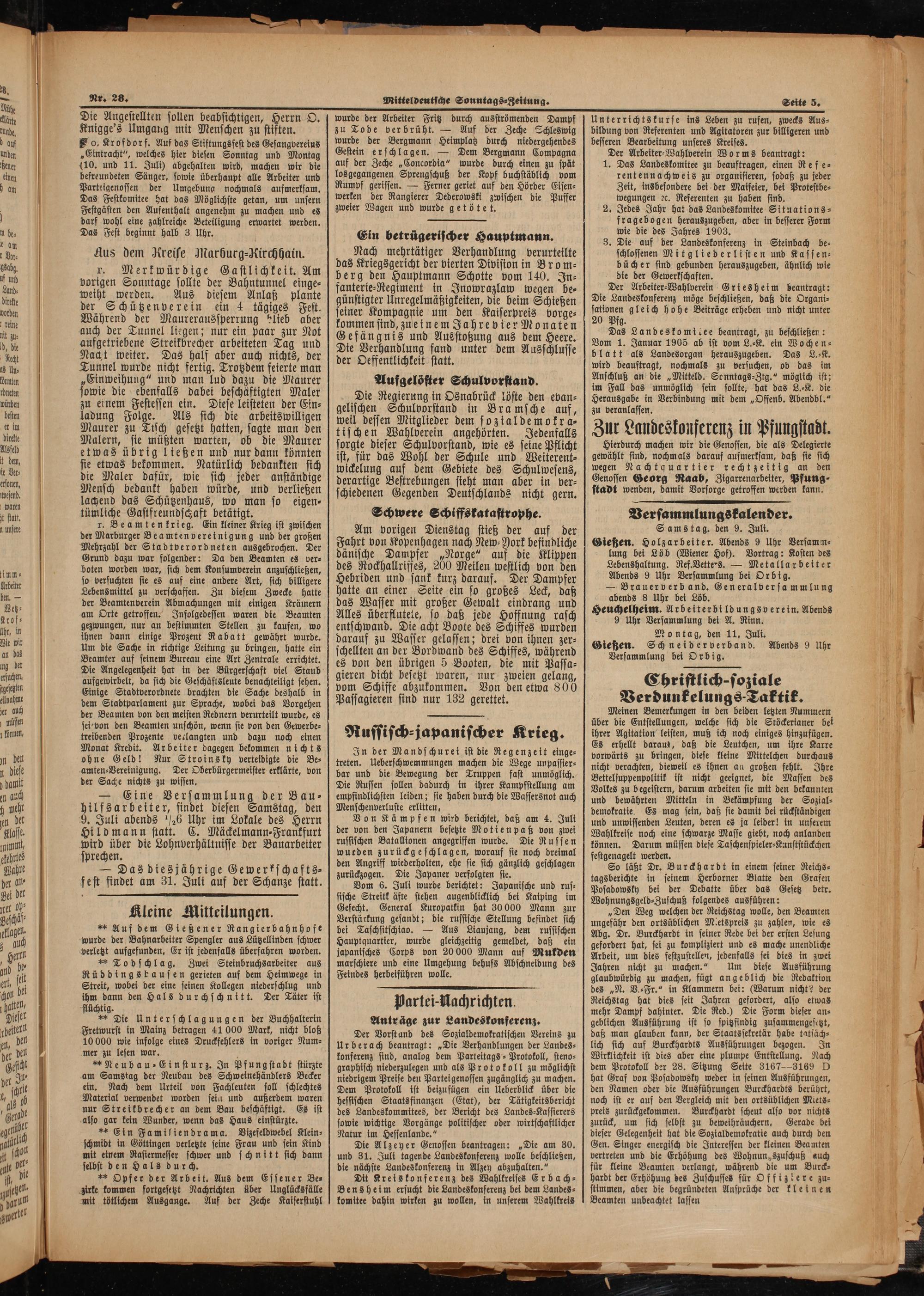 Von Kämpfen wird berichtet, daß am 4. Juli der von den Japanern besetzte Motien paß von zwei russischen Batalltonen angegriffen wurde. Die Russen wurden zurückgeschlagen, worauf sie noch dreimal den Angriff wiederholten, ehe sie sich gänzlich geschlagen zurückzogen. Die Japaner verfolgten sie.