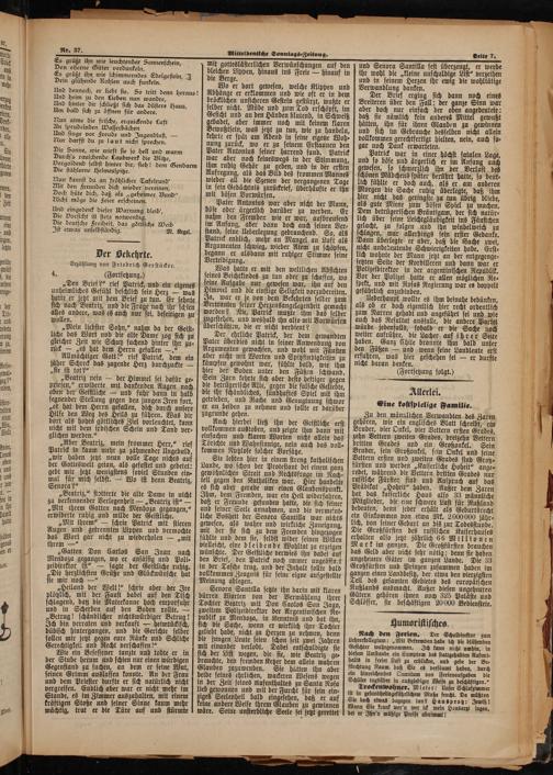 Sie lebten hier in einem streng katholischen Lande, wo schon der Protestant bei einem ganz gewöhnlichen Streit und Rechtsfrage im Nach⸗ teil gegen den Katholiken war. Hier handelte es sich aber gerade um einen Glaubenspunkt. Ihm, dem Fremden, war ein Heil widerfahren, daß er Freunde gefunden hatte, die sich seiner und seiner Seele annahmen, und die vermeint⸗ liche Bosheit der Senora Santilla war nichts gewesen, als wahre und wirkliche Zuneigung, mit der sie sich zu dem Fremden hingezogen fühlte und dem sie, selbst wider seinen Willen vielleicht, eine bleibende Wohltat zu erzeigen wünschte. Der Geistliche verwies ihn dabei auf den Brief, den Patrick noch immer ungeöffnet in der Tasche trug, und der Inhalt sollte bald vollkommen Zeugnis für seine eigne aufgestellte Meinung ablegen.