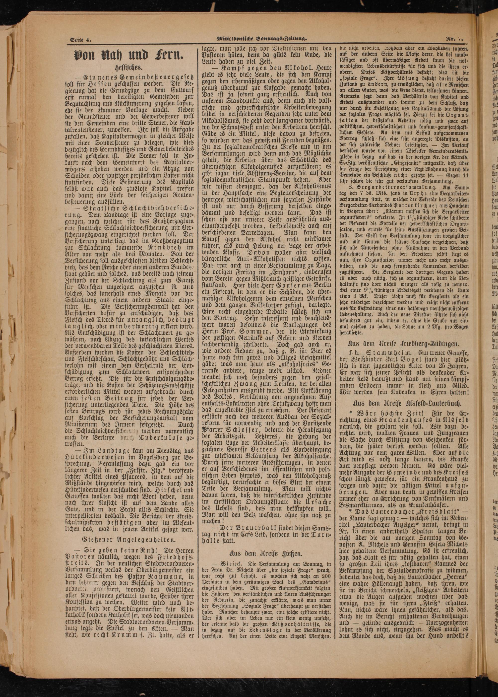 Seite 4. g Mitteldeutsche Sonutaas⸗geitung. 8 lagte, man solle sich vor Distussionen mir den die nicht arbe ten, trosdem aber ein Wohlleben futren, Pon Uah und Fern. Pastoren hüten, denn da gibts kein Ende, die] auf der andern Seite die Masse derer die bel unab⸗