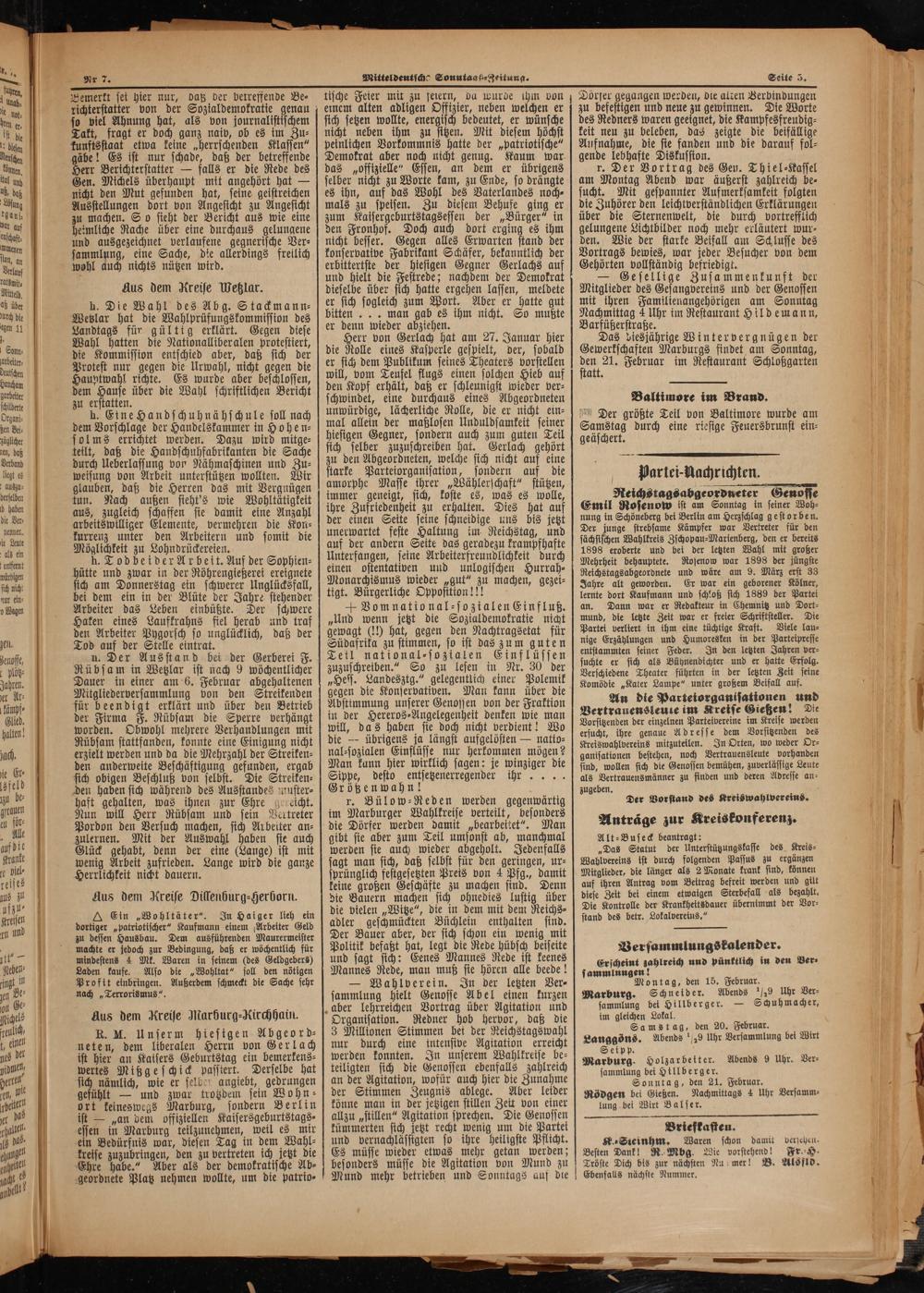 R. M. Unserm hiesigen Abgeord⸗ neten, dem liberalen Herrn von Gerlach ist hier an Kaisers Geburtstag ein bemerkens⸗ wertes Mißgeschick passtert. Derselbe hat sich nämlich, wie er selbe angiebt, gedrungen gefühlt— und zwar trotzdem sein Wohn⸗ ort keineswegs Marburg, sondern Berlin ist—„an dem offiziellen Kaisersgeburtstags⸗ essen in Marburg teilzunehmen, weil es mir ein Bedürfnis war, diesen Tag in dem Wahl⸗ kreise zuzubringen, den zu vertreten ich jetzt die Ehre habe.“ Aber als der demokratische Ab⸗ geordnete Platz nehmen wollte, um die patrio⸗