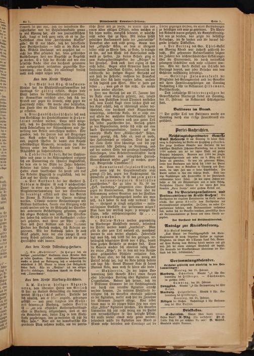 — Gesellige Zusammenkunft der Mitglieder des Gesangvereins und der Genossen mit ihren Familienangehörigen am Sonntag Nachmittag 4 Uhr im Restaurant Hildemann, Barfüßerstraße.