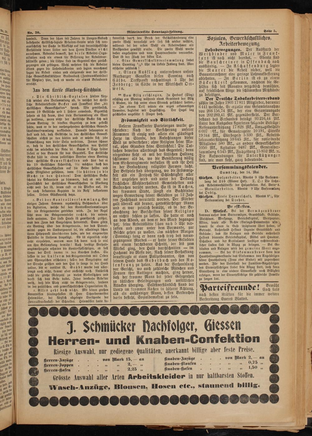 Soziales, Gewerkschastliches, Arbeiterbewegung.