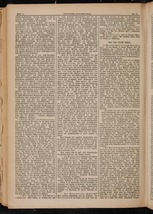 — Der Gesang verein„Eintracht“ hält nächsten Samstag, den 22. Oktober, sein Stiftungsfest im Saale des Café Leib ab.