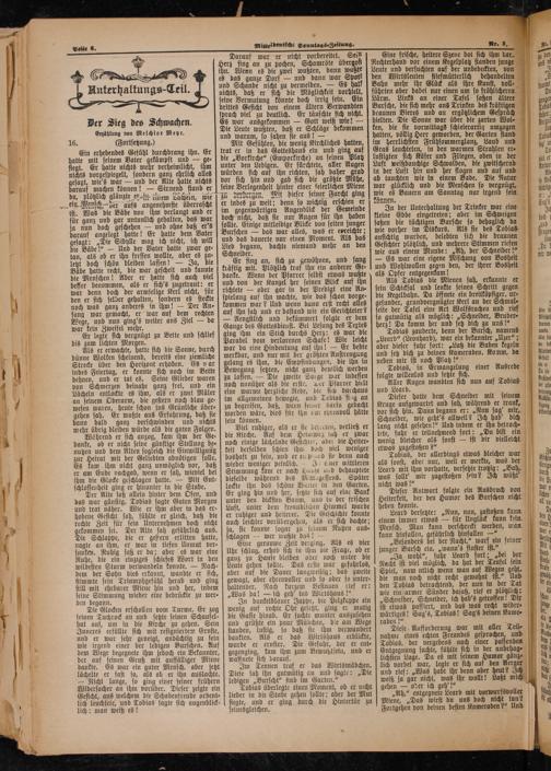 Die Glocken erschollen vom Turme. Er zog seinen Tuchrock an und setzte seinen Schaufel⸗ hut auf, um in die Kirche zu gehen. Sein Inneres erfüllte sich mit resigniertem Ernste, und er war sehr geneigt, andächtig zu sein wie irgend einer der ledigen Burschen. Auf dem Wege begegnete ihm jedoch ein Bekannter, der auf seinen Gruß mit auffälliger Miene dankte. Es war ein guter Mensch, aber jetzt lächelte er fast so, als ob er ihn auslachte. — Nicht lange, so ging einer seiner frühern Widersacher an ihm vorüber. Dieser zeigte ein Gesicht, aus welchem die Schadenfreude ordent⸗ lich leuchtete, und Tobias sagte sich augenblick⸗ lich: man weiß es!