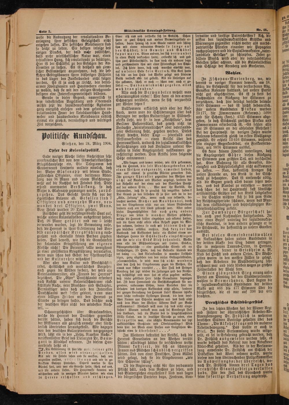 Gießen, den 24. März 1904. Opfer der Kolonialpolitik.