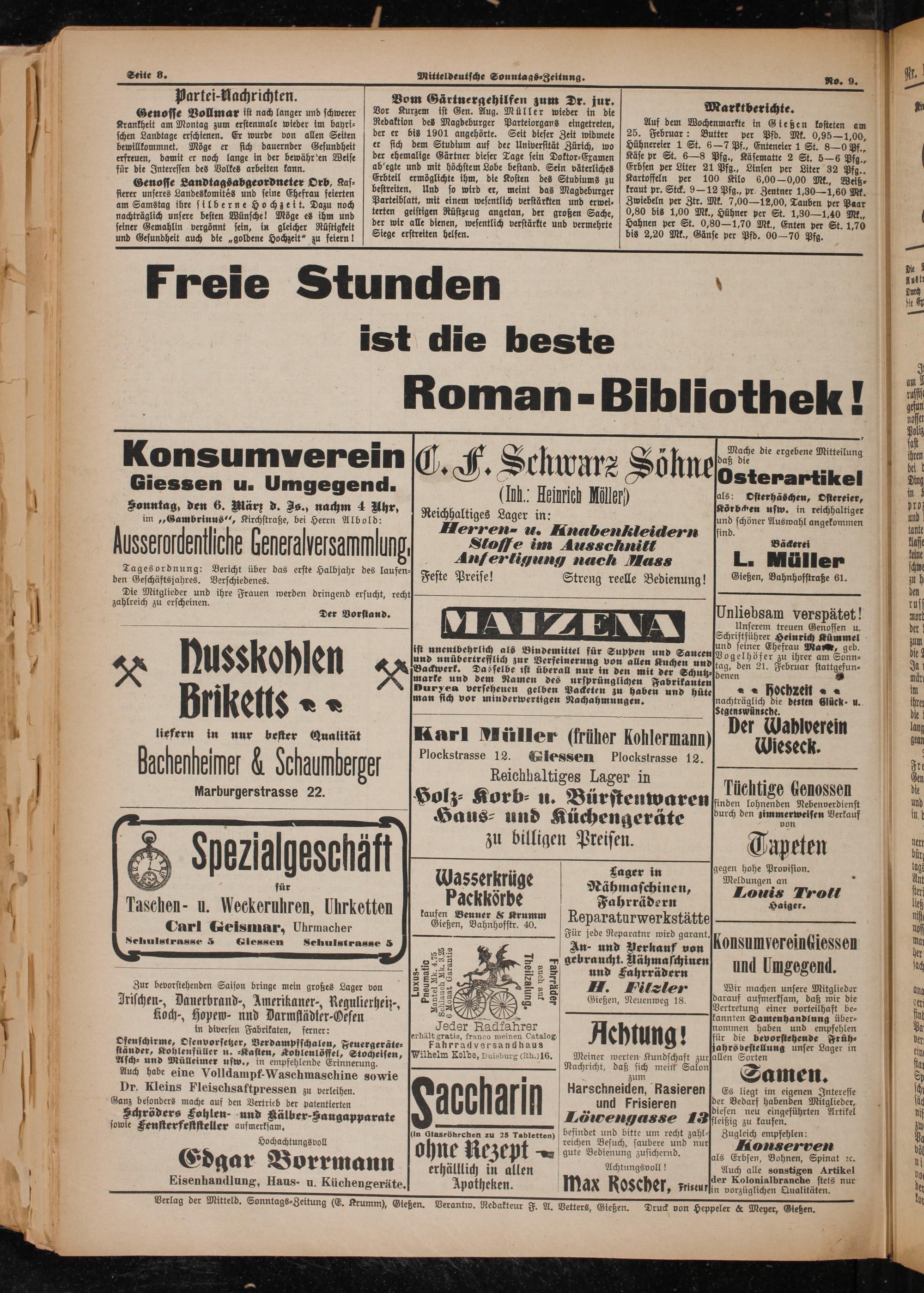 Gießen. Verantw. Redakteur F. A. Vetters, Gießen.