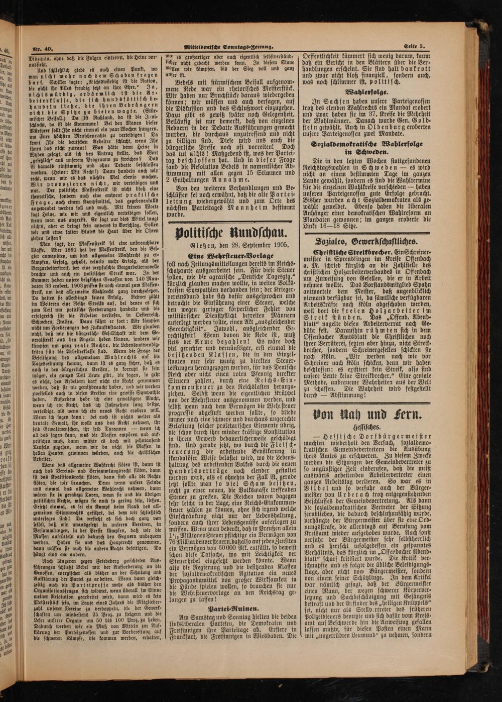 In Sachsen haben unsere Parteigenossen trotz des elenden Wahlrechts ein Mandat erobert und zwar haben sie im 37. Kreise die Mehrheit der Wahlmänner. Danach wurde Gen. Gol d⸗ stein gewählt. Auch in Oldenburg eroberten unsere Parteigenossen zwei Mandate.